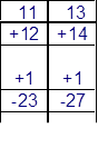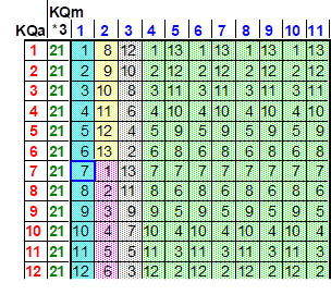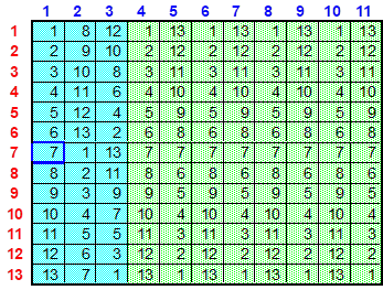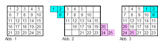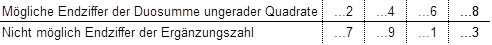 Ergebnisse entstehen, wenn die Summen der “Einer” gleich groß sind. Im Beispiel