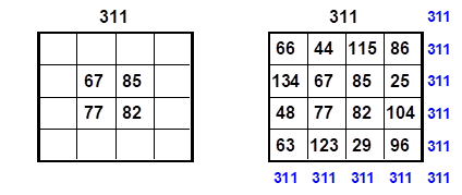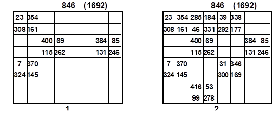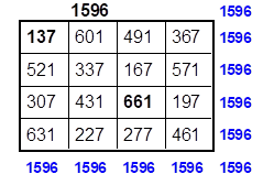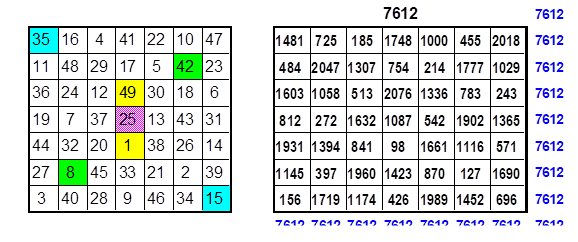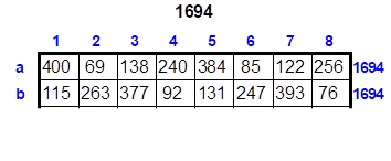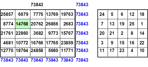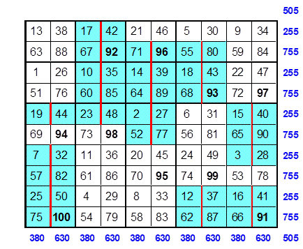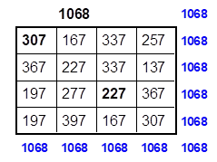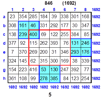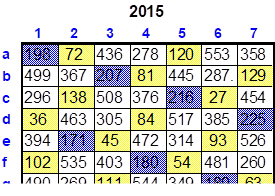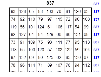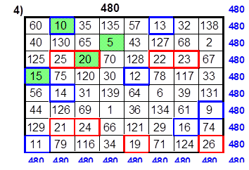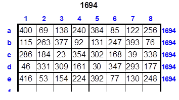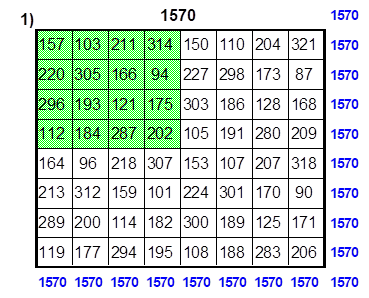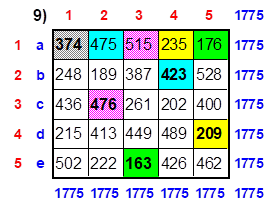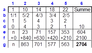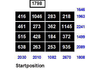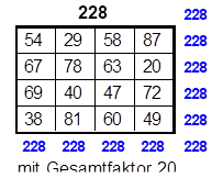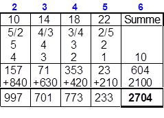 Mag bevorzugten Ausgangszahlen sind: 840; 930; 1360; 1180 und 2590. Die Summe