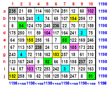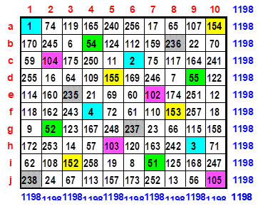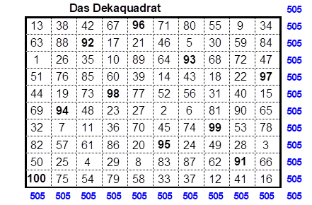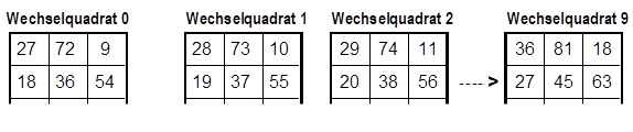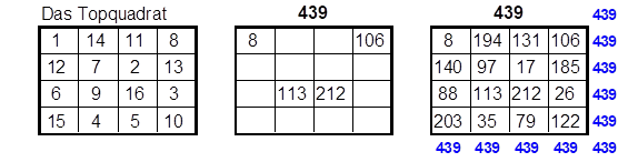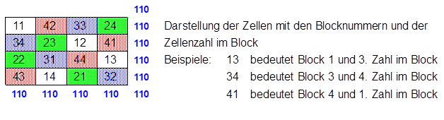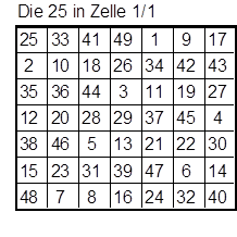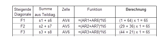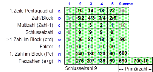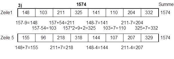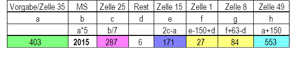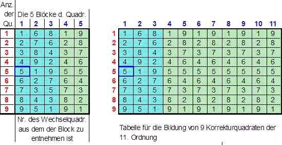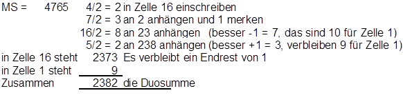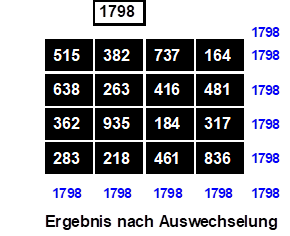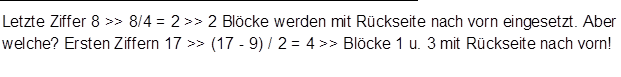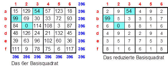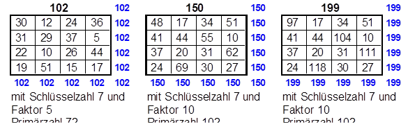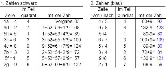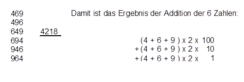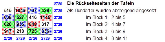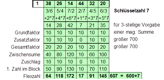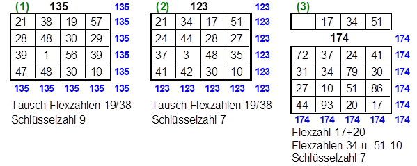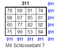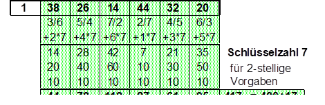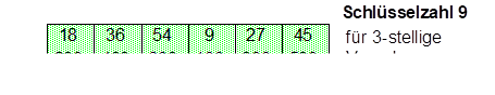der Vorführung die Summe der “Einer” plus Summe “Hunderter” die Schlüsselzahl