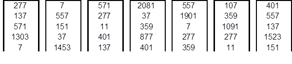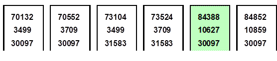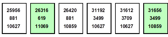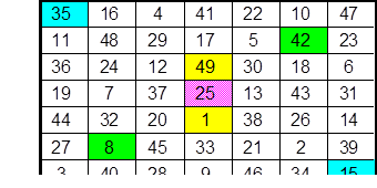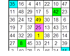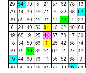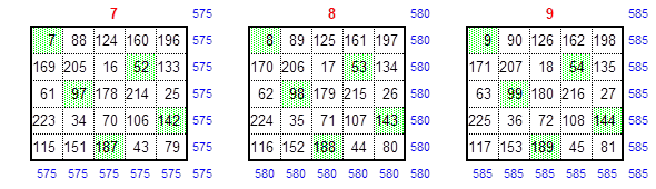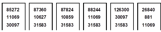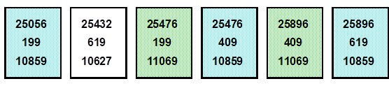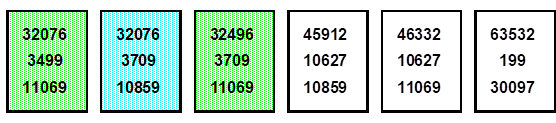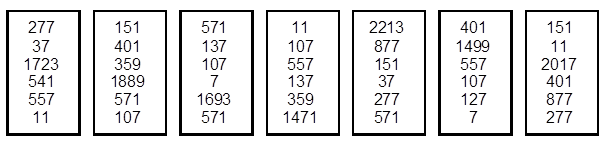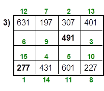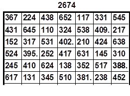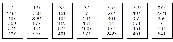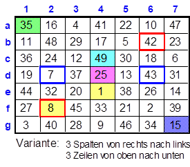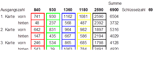Beispiel ist die 1. Zahl der rot gekennzeichneten Karten 741. Das ist