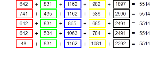 werden einige Beispiele mit den einheitlichen Summen von 5514 gezeigt.